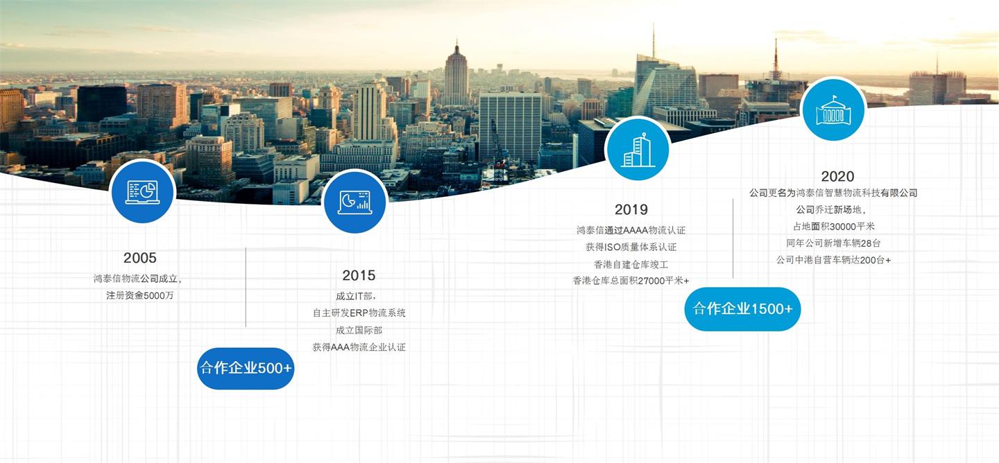 鴻泰信智慧物流是經(jīng)國(guó)家商務(wù)部批準(zhǔn)的一級(jí)物流企業(yè),公司成立于2005年,注冊(cè)資金5000萬(wàn),員工300多人,公司總部位于深圳,被客戶(hù)譽(yù)為中港物流界最為專(zhuān)業(yè)的物流服務(wù)方案運(yùn)營(yíng)商!鴻泰信在行業(yè)內(nèi)首個(gè)提出打造中港物流創(chuàng)業(yè)平臺(tái)的使命,并以“成為中港運(yùn)輸品牌服務(wù)商”為我們的愿景。多年來(lái)在團(tuán)隊(duì)的努力和廣大客戶(hù)的支持和信賴(lài)下,發(fā)展壯大,成為行業(yè)的標(biāo)桿!