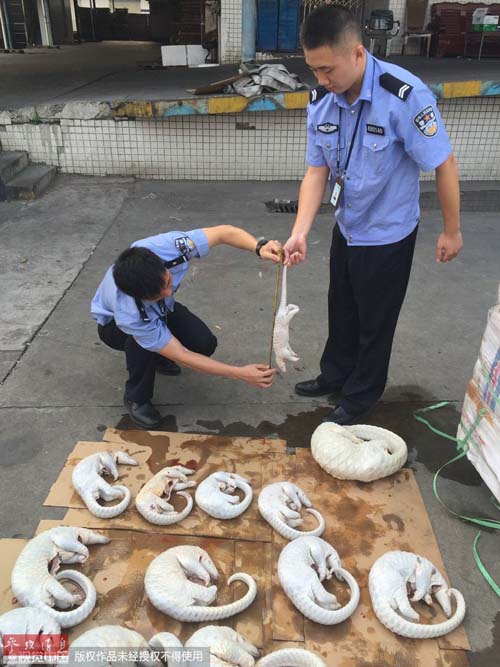 經(jīng)回港清點(diǎn),涉案走私船共裝有穿山甲凍體414箱,共2674只。這是近幾年來(lái)全國(guó)海關(guān)查獲的最大起穿山甲走私案。
