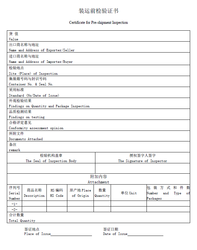 施檢部門應(yīng)在完成檢驗(yàn)后的5個(gè)工作日內(nèi),由授權(quán)檢驗(yàn)員簽發(fā)裝運(yùn)前檢驗(yàn)證書。