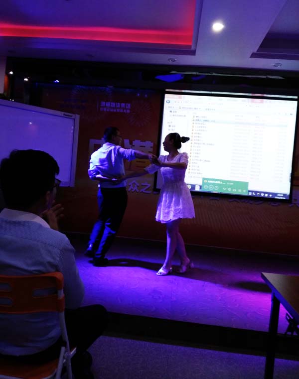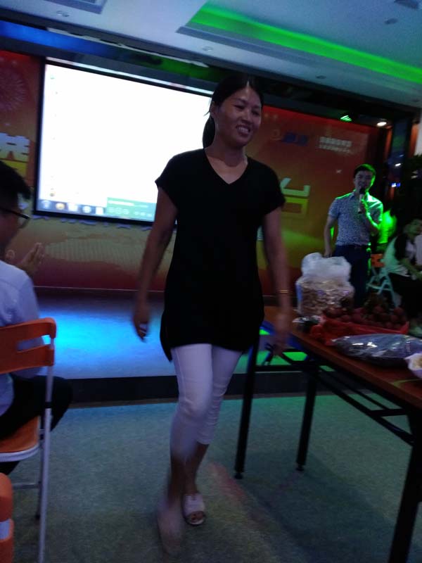 接下來是擊鼓傳“氣球”游戲,“花”由氣球代替。當鼓聲響起,在座的鴻泰信家人,從第一排第一位依次傳氣球。當鼓聲消停,氣球落誰手里,就由誰站出來奉獻才藝。鴻泰信物流總經(jīng)理-李總在第一排第一位,從李總開始將氣球傳出去,幾番輪回,分別有5、6位鴻泰信家人中彩,站上臺前,有的表演舞蹈,有的表演屁股寫字,有的演繹模特走貓步。