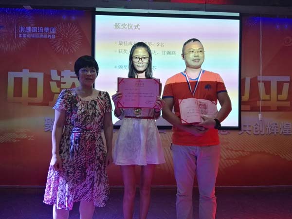 激動人心的頒獎環(huán)節(jié),在熱烈的掌聲中進行。當部門管理人總結(jié)完畢,主持人一一公布季度優(yōu)秀員工、電話量冠軍、最佳執(zhí)行標兵、季度內(nèi)成長最快的員工、最優(yōu)秀的團隊等獎項的獲獎名。每公布一個獎項的獲獎名單后,相關(guān)獲獎人員就站到舞臺上,由頒獎嘉賓為他們頒獎,并合影留念。最后所有獲獎人員,與公司總經(jīng)理一起合影留念。
