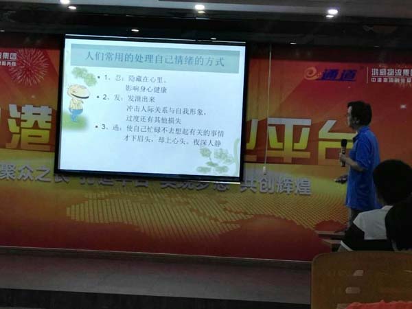 為了讓員工學(xué)會(huì)釋放壓力,調(diào)節(jié)情緒,以積極的心態(tài)面對(duì)生活以及中港貨運(yùn)工作中的困難,情緒和壓力的管理被提上日程。公司領(lǐng)導(dǎo)專(zhuān)門(mén)請(qǐng)來(lái)寧波大學(xué)心理學(xué)教師、心里咨詢(xún)師、催眠師-賀老師來(lái)培訓(xùn)。