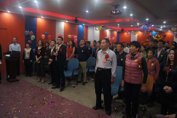 李總致詞結(jié)束,又帶領(lǐng)在場的鴻泰信人唱<鴻泰信之歌>