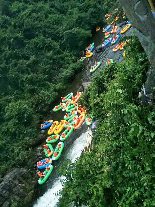第二天,早餐后開(kāi)展漂流探險(xiǎn)活動(dòng),兩人一組穿上救身衣,坐上橡皮艇,順流而下,聽(tīng)潺潺水響,享自然清新,歷未知驚險(xiǎn),覺(jué)快樂(lè)溫馨