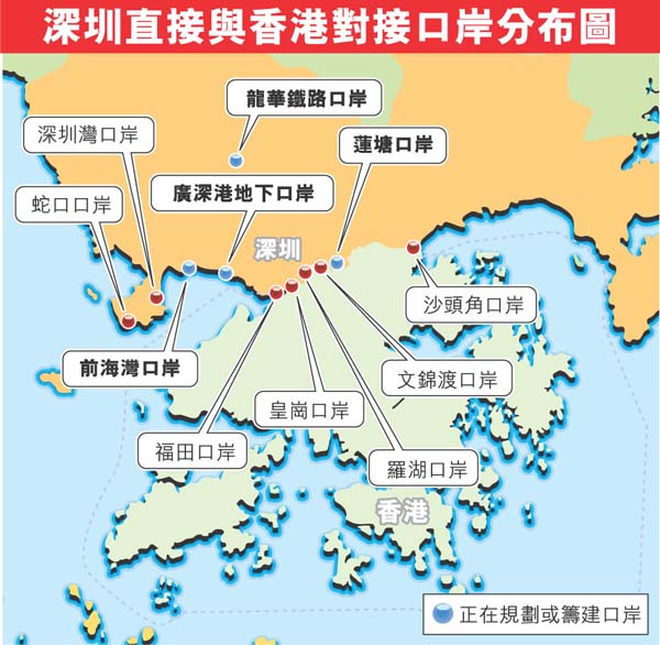 備注:文錦渡口岸工于2013年8月改建完成后,提供人工查驗通道24條,自助式20條。與皇崗口岸相似,過境人員從中國邊檢通關后需乘巴士前往香港邊檢,口岸內(nèi)有專線直達上水站。